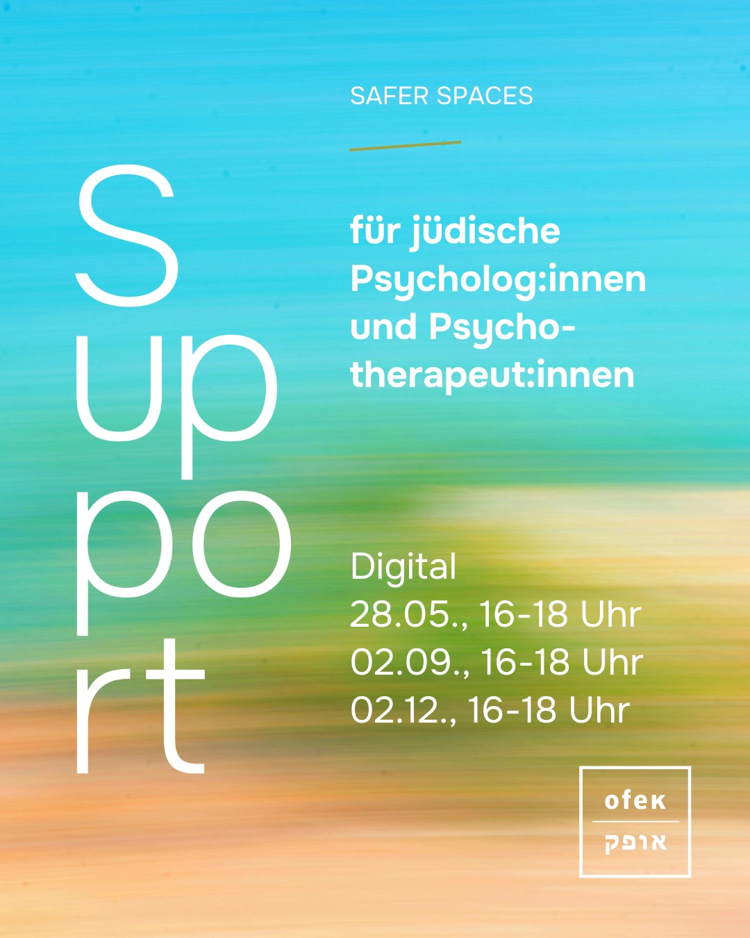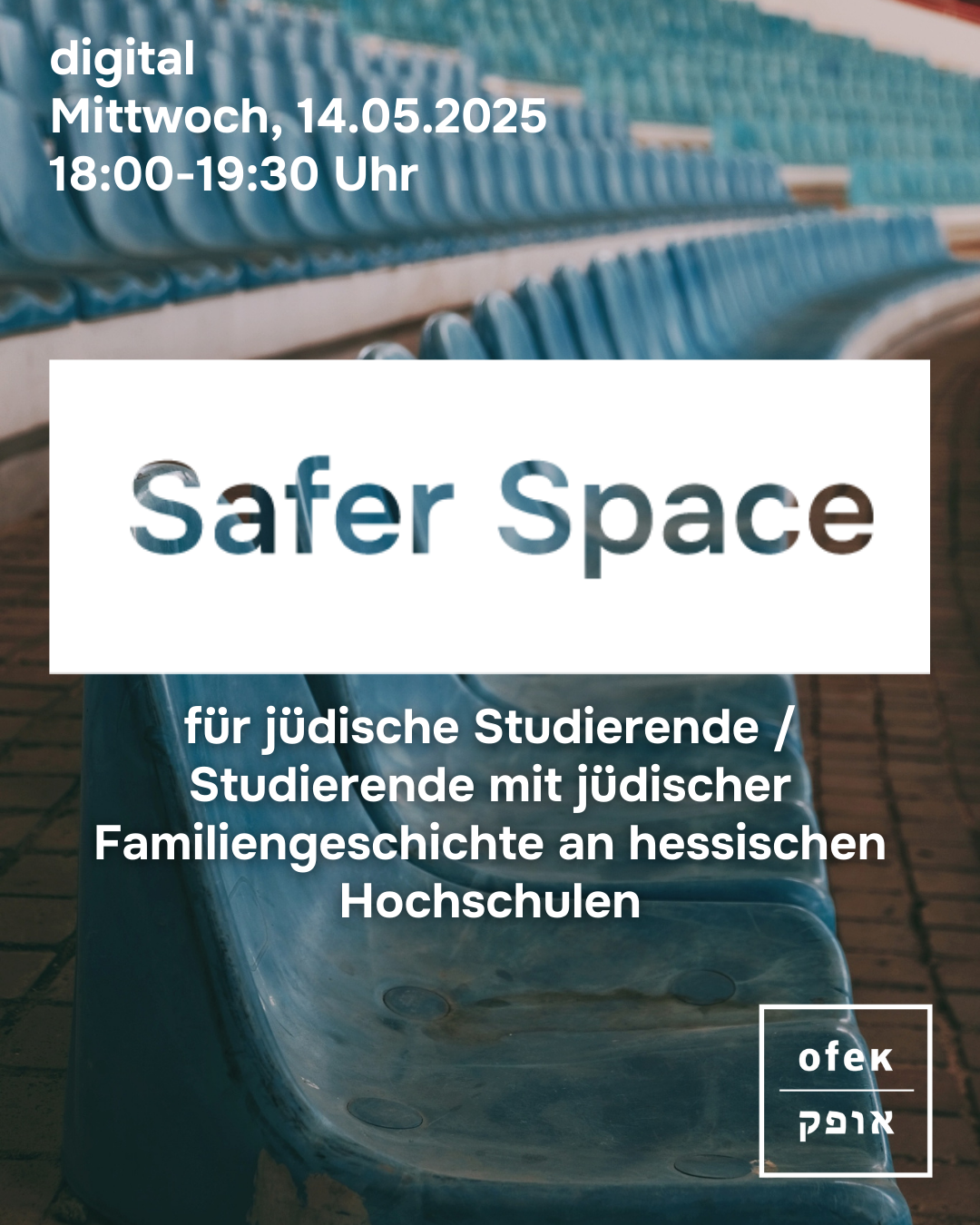 Anmeldung: Die Anmeldung erfolgt direkt über OFEK e.V. unter saferspaces@ofek-beratung.de. Für eine bessere Planung bitten wir um Anmeldung bis 12.05.2025.