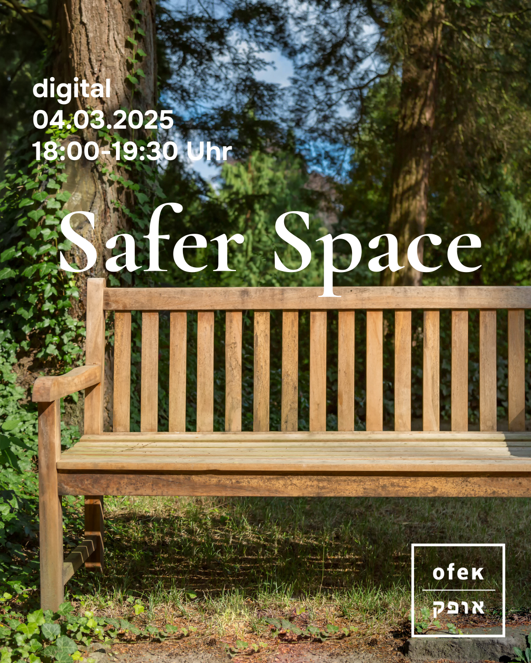 Anmeldung: Die erfolgt direkt über OFEK e.V. unter saferspaces@ofek-beratung.de. Für eine bessere Planung bitten wir um Anmeldung bis 02.03.2025.