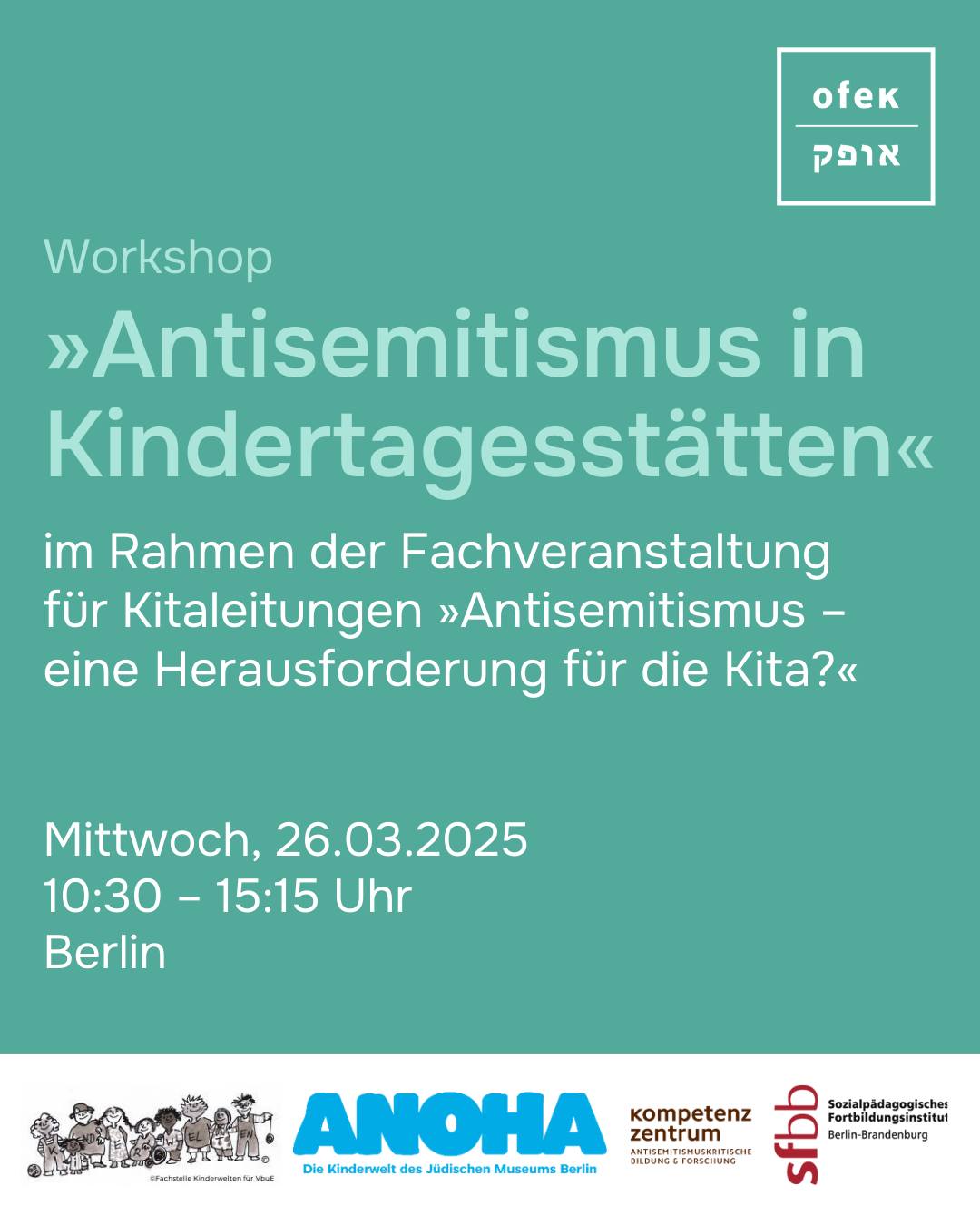 Gemeinsam mit dem Anne Frank Zentrum (@annefrankzentrum) , ANOHA (@anohaberlin@juedischesmuseumberlin) , dem Institut Kinderwelten (@fs_kinderwelten) , dem Kompetenzzentrum für antisemitismuskritische Bildung und Forschung und dem Sozialpädagogischen Fortbildungsinstitut Berlin-Brandenburg (SFBB) (@komp_zentrum) gehört OFEK e.V. zu den Veranstaltenden dieses Workshops.